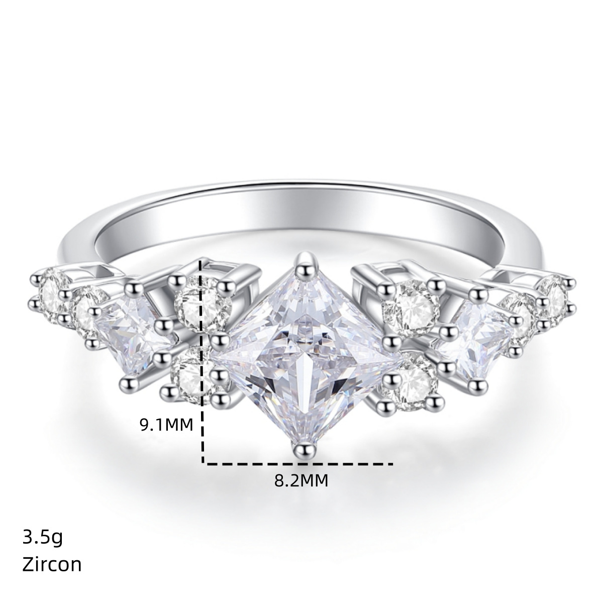 Be the first to review “S925 Sterling Silver Princess Square Bag Moissanite Ring”