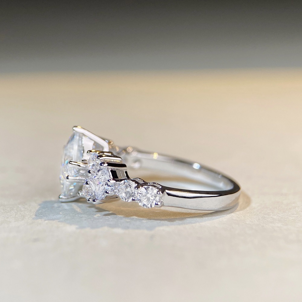 S925 Sterling Silver Princess Square Bag Moissanite Ring