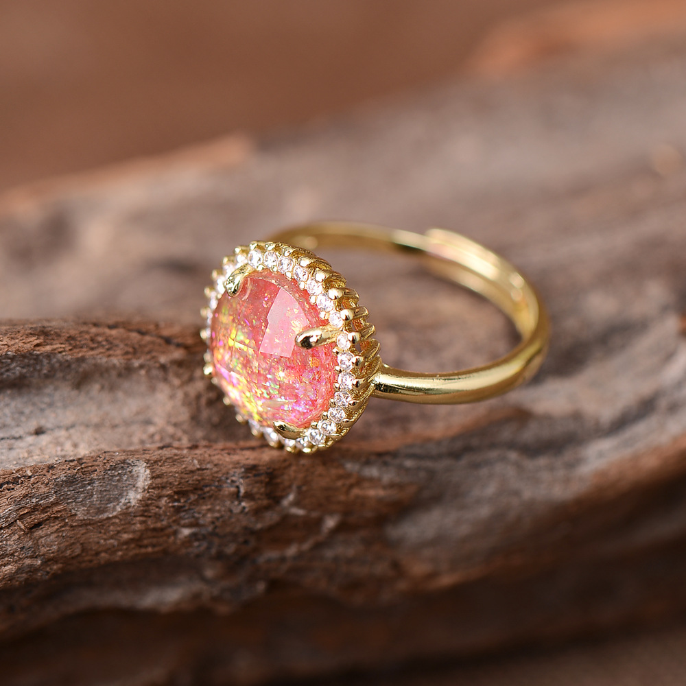 Zircon Opal Blue Diamond-studded Ring Adjustable